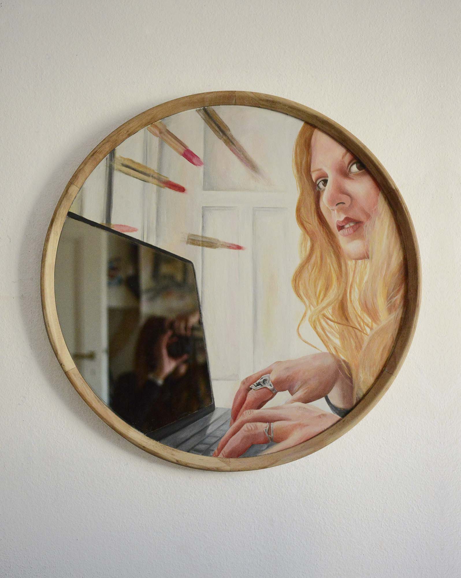 Recently presented at the Pully museum, the painting Pretty girls should always smile is part of the Appearance, a feminist figurative paintings serie.