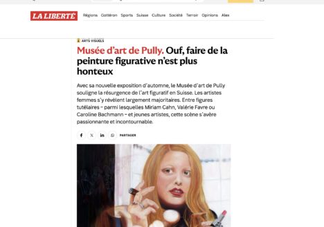 Aurélie Lebreau12 septembre 2025 à 09:47https://www.laliberte.ch/articles/culture/arts-visuels/ouf-faire-de-la-peinture-figurative-nest-plus-honteux-1195198?srsltid=AfmBOooFNJZi7z7uzOUzCuPlfw8rslfCm-lt_TdvSypJPvsFoE-cFPSy Avec sa nouvelle exposition d’automne, le Musée d’art de Pully souligne la résurgence de l’art figuratif en Suisse. Les artistes femmes s’y révèlent largement majoritaires. Entre…