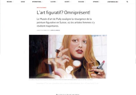 Le Musée d’art de Pully souligne la résurgence de la peinture figurative en Suisse, où les artistes femmes s’y révèlent majoritaires.lundi 20 octobre 2025Par: Aurélie Lebreau dans Le Courrierhttps://lecourrier.ch/2025/10/20/lart-figuratif-omnipresent/ Screenshot4 December 2025 -
