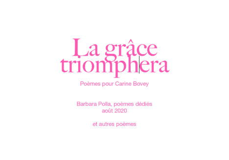 La grâce triomphera Poèmes pour Carine Bovey Barbara Polla, poèmes dédiés août 2020 et autres poèmes [flipbook pdf=” http://carinebovey.com/carinebovey/wp-content/uploads/2020/08/LA-GRACE-TRIOMPHERA-POEMES-carine-bovey-barbara-polla.pdf “]