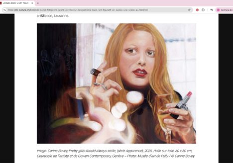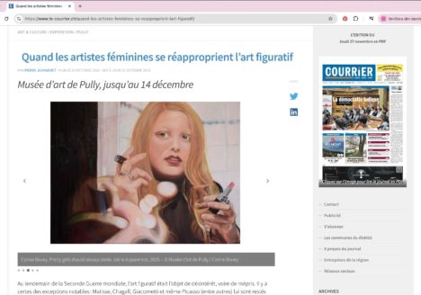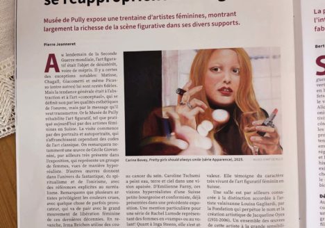 modifié le 26 septembre 2025 à 16:20à la RTSPar Julie Evard https://www.rts.ch/info/culture/arts-visuels/2025/article/l-art-figuratif-au-feminin-s-expose-au-musee-d-art-de-pully-28996632.html L’exposition “Come back! L’art figuratif en Suisse: une scène au féminin” réunit jusqu’au 14 décembre au Musée d’art de Pully (VD)…