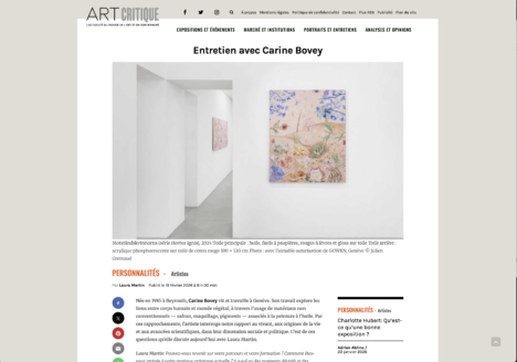 Par Laura Martin Publié le 19 février 2026 à 8 h 00 minsur Art Critiquehttps://www.art-critique.com/2026/02/entretien-carine-bovey-corps-botanique-art-contemporain/