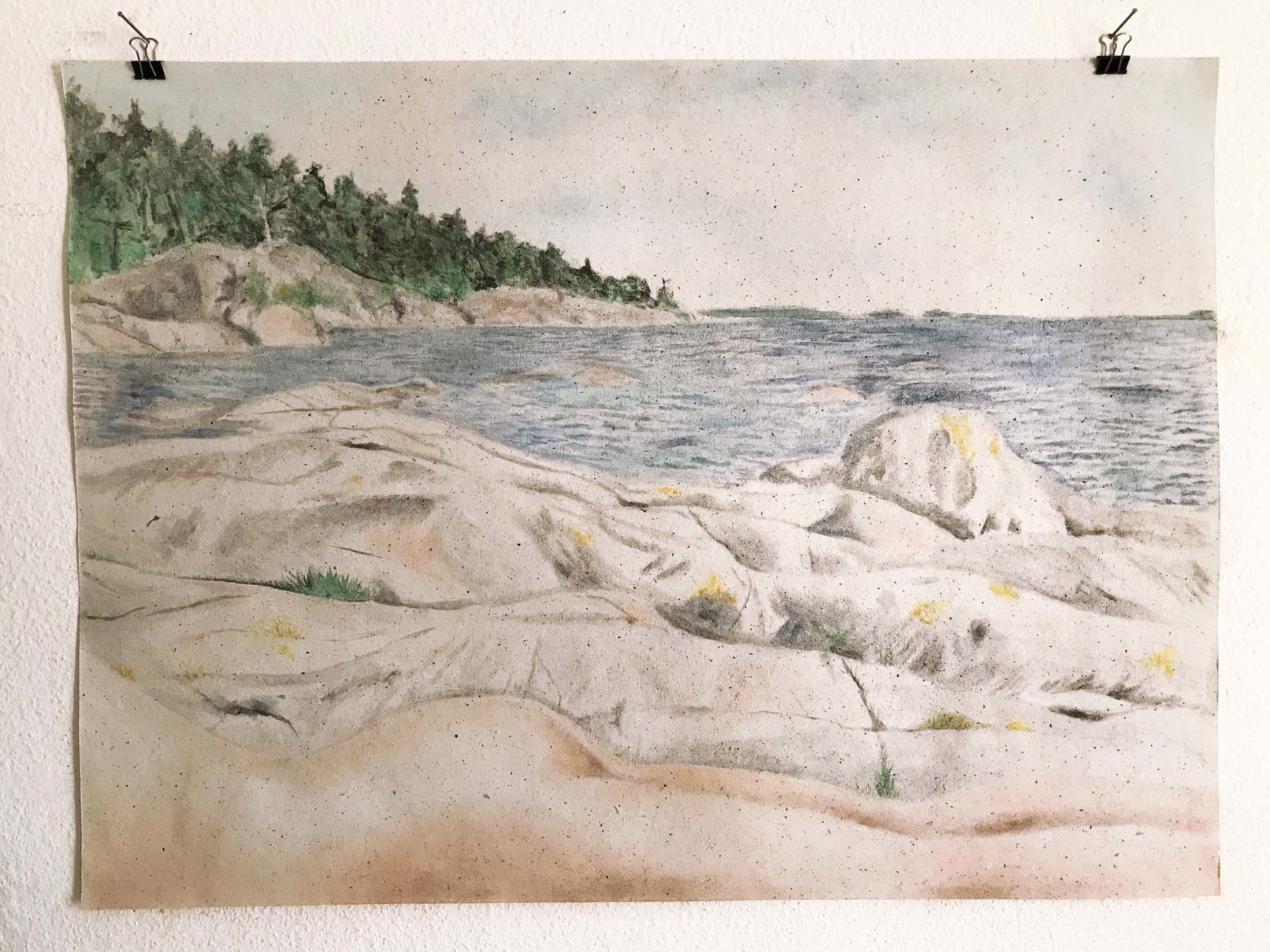 Eyeshadows and tears on grass paper