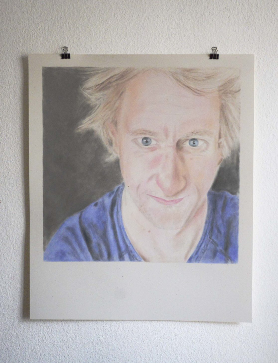 De här teckningarna, helt gjorda med ögonskuggor och blush, har samma proportioner som Polaroid och påminner också om sådana ögonblicksbilder.